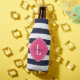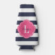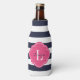 Monogramm Navy Blue und Pink Preppy Strips Flaschenkühler