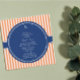 Das Design zeichnet sich durch ein abwechselnd orangefarbenes und weißes Streifen-Muster im Hintergrund aus. Auch das Design hat Braut's erste Features. Ein elegantes gestreiftes Muster und in der Mitte befindet sich ein königsblauer Kreis, in dem Sie den Text Ihrer Einladung hinzufügen können. Brautpartyeinladungen.