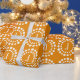 Orange mit White Mit Monogramm Letter Initial umkreist von polka Punkten auf Geschenkwrap. Behalt die J Monogram oder ändere sie zu deiner eigenen.