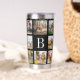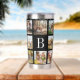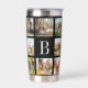 Erstellen Sie Ihren eigenen isolierten Tumbler mit 14 Ihrer Lieblingsfotos in einem minimalistisch gestalteten Collage Grid für Fotos. Fügen Sie Ihr eigenes individuelles Monogramm zuerst in der modernen Typografie für eine personalisierte Touch hinzu.