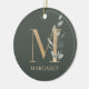 Letter M monogramm floral. Letter M in goldbrauner Textur mit grünen Aquarellfarben Blätter, Blume Blüten und Goldstaub. Mit Namen in passendem Schriftart autorisiert.