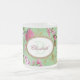Rosa Blume und goldener Rahmen mit Ihrem Namen, Initialen oder Monogramm in der Mitte. Benutzerdefinierte Farbe von Initialen oder Name und Hintergrund.