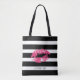 Einfache schwarz-weiße Streifen und rosa Lippen. Maßgeschneiderte Taschenvorlage