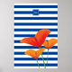 Kalifornien goldfarbene Orange und rote Pappi Pop gegen tiefblaue und weiße Streifen für kühnen chischen Sommerstil elegant mit Ihrem Monogramm gerahmt in einem kleinen und klassisch dunkelblauen Quadrat. ♡ Idyllfire