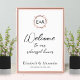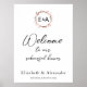 Eine schlichte monogramm blumengeschmückte Rose Goldfolie Probe Dinner-Zeichen. Einfach mit Ihren Daten personalisieren. Modernes boho Probe Dinner signiert bearbeitbaren, anpassbaren, kalligraphischen handschriftlichen Schriftart, einfach, elegant.
