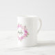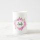 Eleganter blumenreicher Kranz mit rosa Blume und zarten Blätter mit einem schönen Namensmonogramm. Eine sanfte Aquarellkunst, leicht zu personalisieren, indem man den Buchstaben und den Namen ersetzt. Drücken Sie Anpassen, um Ihre eigene Touch hinzuzufügen.