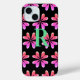 Monogramm Retro floralschwarz pink Case-Mate iPhone Hülle