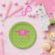 Monogramm-rosa Abschluss-Kappe + Grünes Quatrefoil Pappteller