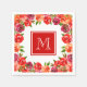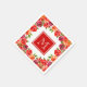 Blumenmuster aus roten, orangen, rosa und bordeauxfarbenen Blume und grünen Blätter, die mit einem Monogramm, Initialen, Namen oder Sprichwort personalisiert werden können. Ideal für ein Party, eine Geburtstagsfeier, ein Geschenk, einen Hochzeitsempfang, eine Hauswärmespende oder für Ihre eigene Wohngestaltung.