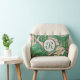 Monogramm, rosa und grünes Blattkissen Lendenkissen