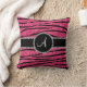Monogramm rosa Zebra-Streifen-Kreis Kissen