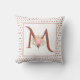Elegantes Terracotta Monogramm, Rosenbouquet und Polka Punkte Blumenkissen. Dieses Blumendesign zeigt einen Strauß rosa Rosen und verlasst auf Ihrem Monogramm, das in Terrakotta-Farbe ist. Um das Monogramm herum gibt es zwei Ränder und Polka Punkte. Möglicherweise müssen Sie die Position des Briefes anpassen, wenn Sie ihn und den Bouquet wechseln.