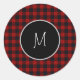 Monogramm Rot und Schwarz Buffalo Kariert Runder Aufkleber