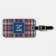 Mit Monogramm Gepäckanhänger mit rotem, weißem und blauem Tartan-Muster und Ihr anfängliches gerahmte in blauem Quadrat mit weißem Rand.