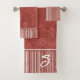 Monogramm rotes Boho Muster und weiße Streifen Badhandtuch Set