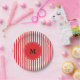Monogramm-rotes und weißes Streifen-Muster Pappteller