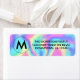Monogramm benutzerdefinierte Rücksendeadresse Etikett mit Initial. Holiday benutzerdefinierte Rücksendeaufkleber mit Vintagem Monogramm und holografischem Hintergrund.