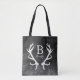 Ein Schwarzweiss-Aquarellhintergrund mit subtilem spritzt und Malerpinselanschläge legt den Grundstein für ein schönes, modisches Einzelteil. Personifizieren Sie es mit Ihrem Namen und Monogramm! Ein Paar rustikale weiße europäische Rotwildgeweihe fügt eine Touch des Landes hinzu. Passt neutralen Dekor und macht ein künstlerisches Geschenk für die, die auch das Freien schätzen.