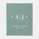 Diese Fleecedecke bietet ein modernes minimales Design mit einem Monogramm, dem Namen und dem Hochzeitstermin der Neuvermählten. Der Hintergrund ist hellgrün und kann in jede andere dunkle Farbe geändert werden. Das ist ein großartiges personalisiertes Geschenk für die Neuvermählten.