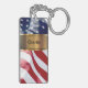 Monogramm-Schlüsselanhänger mit Namen mit dem patriotischen Muster der amerikanischen Flagge besonders gut konzipiert für Männer oder Frauen, Jungen oder Mädchen aber Arbeiten für Kriegsveterane. Ein Seitenacrylentwurf des Spaßes zwei, der Sie Ihre Autoschlüssel oder -haus tragen lässt, befestigt in der Art und macht ein großes Gastgeschenk.