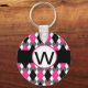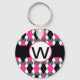 Monogramm-Schlüsselanhänger mit Hot-Pink- und Schwarz-Raute-Design