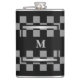 Maskuline Black Checkered Personalisierten Mit Monogramm Hüftkolben. Maskuline Schwarz-Grau personalisierte mit Monogramm Hip Flasche für Sie zu personalisieren - entworfen in Schwarz-Grau-Farben mit einem auffallenden silbernen Rahmen, dieser Hip Flask ist modern und stilvoll, und ist leicht zu anpassen! Genießen Sie Ihr Getränk mit dem klassischen Mit Monogramm Checkerboard oder verschenken Sie es einem Freund!