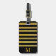 Gepäckanhänger mit einem klassischen schwarzen und Imitat goldenen Streifen-Muster, monogramm Initial(en)/Name, und Adressinformationen auf einem Imitat Gold Glitzer Hintergrund. Personalisieren Sie Ihre Monogramm-Initial(en)/Name, Name und Adressinformationen mithilfe der einfachen Vorlagen. Schriftart, Schriftart und Schriftart sind individuell einstellbar. Ideal für jeden Reisebeutel.