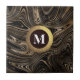 Personalisieren Sie diese moderne Kachel mit Ihrem Monogramm auf einem schwarzen goldenen Emblem mit einem eleganten goldenen und schwarzen, fließenden Marmorboden.