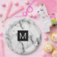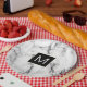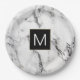 monogramm-Schwarz-Weiß-Marmor Pappteller