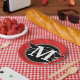 Papiertafel für Party in Monogramm, Rot, Schwarz und Weiß.