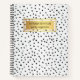 Stilvolles Notizbuch für Ihre Zuhause, Ihr Büro oder Ihre Schule mit modernen schwarzen Pinselstrichen polka Punkte Muster auf einem silberweißen Hintergrund und Ihren Initialen.