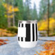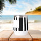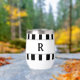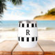 Schwarzes Monogramm gegen weißen grauen Rahmenbereich. Elegante schwarze und weiße vertikale Streifen. Designs von TamiraZDesigns.
