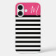 Monogramm schwarze und rosa Preppy-Streifen Case-Mate iPhone Hülle
