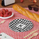 Mit Monogramm Papierplatte aus schwarz-weißem Hahnentrittmuster. Das Design zeichnet sich durch ein klassisches Hahnentrittmuster-Muster in Schwarz und Weiß und Ihren individuellen Einstieg aus.