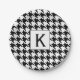 Monogramm Schwarzweiß-Hahnentrittmuster-Muster Pappteller
