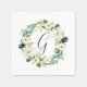 White Floral Wreath Monogram Napkin mit einem Kranz von Aquarellgrün mit weißen Blume. Für eine weiter gehende Anpassung dieses Designs klicken Sie bitte auf den Button "Anpassen". Matching-Elemente sind ebenfalls verfügbar.