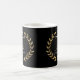 "Monogram Script Letter J Black n Gold Name Coffee Tasse." Eleganter und ausgeklügelter Goldblatt-Kranz mit Ihrem Monogramm, Alphabet, Buchstabe J in Gold Glitzer. Personalisieren Sie Ihren Namen in der Skripthandschrift. Kunst des international lizenzierten Künstlers Audrey Jeanne Roberts, Urheberrecht.