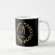 "Monogram Script Letter K Black and Gold mit Ihrem Namen auf einer Coffee Tasse." Eleganter und ausgeklügelter Goldblattkranz mit Monografie, Alphabet, Buchstabe K in Goldbarren Glitzer. Personalisieren Sie Ihren Namen in der Skripthandschrift. Kunst des international lizenzierten Künstlers Audrey Jeanne Roberts, Urheberrecht.