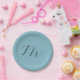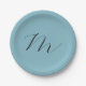 Monogramm Solid Blue Pastel Minimalistisch Berufli Pappteller