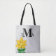 Stilvolle Tasche mit mit Monogramm Initialen im mutigen schwarzen Text. Handgemalte gelbe Sonnenblume gegen Watercolorwashingtons graues Weiß der Holzkohle hübsche Taschenrückseite mit Rückseite des Normallacks. Reizendes ein-von-ein-nettes Geschenk für jemand oder zu Leckerei sich. Originalvorlage durch TamiraZDesigns.