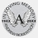 Monogramm Gedenkstiftsticker in Silberfarben.