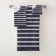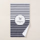 Set für die Navy Monogram Stripes Bath Handtuch. Nautisches Design mit Monogramm im Kreis auf der Marine und hellblauen Streifen. Passen Sie dieses Produkt mit Ihren ersten Zazzle-Tools für die Anpassung an Ihre Bedürfnisse an. Wir laden Sie zu unserem Geschäft, Simon und Grace, für passende Produkte und mehr ein.