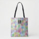 Monogramm Totbeutel mit abstrakter Gestaltung von bunten Flecken.