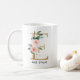 Schöne Blumenmonogramm-Tasse in einer Imitatgoldfolienart macht ein großes kundenspezifisches Hochzeitsgeschenk, kundenspezifisches Lehrergeschenk, kundenspezifisches Geburtstagsgeschenk, kundenspezifisches Feiertagsgeschenk, Geschenk der Mutter Tagesund Geschenk für jede Anlässe. Der Text ist optional und kann während der besonders anfertigenden Phase entfernt werden. Benutzen Sie bitte Versalienbuchstaben, um den gleichen ` Blick' für den individuellen Namen zu erzielen.
