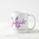 Übergeben Sie gezeichnete Namen- und Bedeutungs-Tasse des Buchstaben H. Hübsche Herz- und Blumen-Hauptstadt H kritzelte den typografischen Entwurf, der Herzen und Blumen und die edle Art Wörter Heidi kennzeichnet. Achtbar, gesegnet mit Perfektion in rosa und in Lila. © einzigartige Kunst und Entwurf durch Sarah Trett. www.sarahtrett.com für www.mylittleeden.com auf zazzle