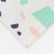 Weißer Hintergrund mit mehrfarbigem Terrazzo-Muster in Rosa, Minze, Beige und Blau. Personalisieren und fügen Sie Ihre Monogramm Initial, Buchstabe.