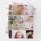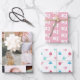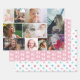 Personalisierte Verpackungspapiere, ideal für Abschluss mit drei Blättern: eine mit einer Foto-Collage Ihres Absolventen; eine weist die Initialen Ihres Abschlusses in weiß gegen rosa auf; Die Abschluss sind in Rosa, Türkis und Weiß gehalten.