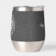 Dieser moderne, 11 oz. Edelstahl-Thermotumbler verfügt über eine schwarze Denim-Verpackung mit gerahmten Schriftzeichen auf einem schwarz-weißen Hahnentrittmuster-Kreismuster. Einfache weiße Schriftzeichen sind auf der Rückseite. Ändern oder Entfernen von Initialen und Text mithilfe der bereitgestellten Vorlage. Doppelwandige Isolierung zur Temperaturerhaltung. Edelstahlkonstruktion für Langlebigkeit. Der klare Deckel ist dicht. Ausgezeichneter Druck und hohe Bewertungen. Weitere Informationen finden Sie unter "Über dieses Produkt" an der Seite.