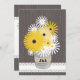 Eine Hochzeitseinladung mit einer Illustration einer Dose gefüllt mit Daisies und schwarzen mit Augen Sushans mit einem Hintergrund von Barnwood. Personalisieren Sie Ihre Initialen auf Dose. Suchen Sie nach passenden Artikeln in Jill's Paperie. Die Aufnahmen stammen von den Eltern der Braut.