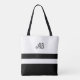 Schwarz-Weiß-Monogramm-Totbeutel. Grosses Dekorieren Blocktext Monogramm mit großen schwarzen Streifen.